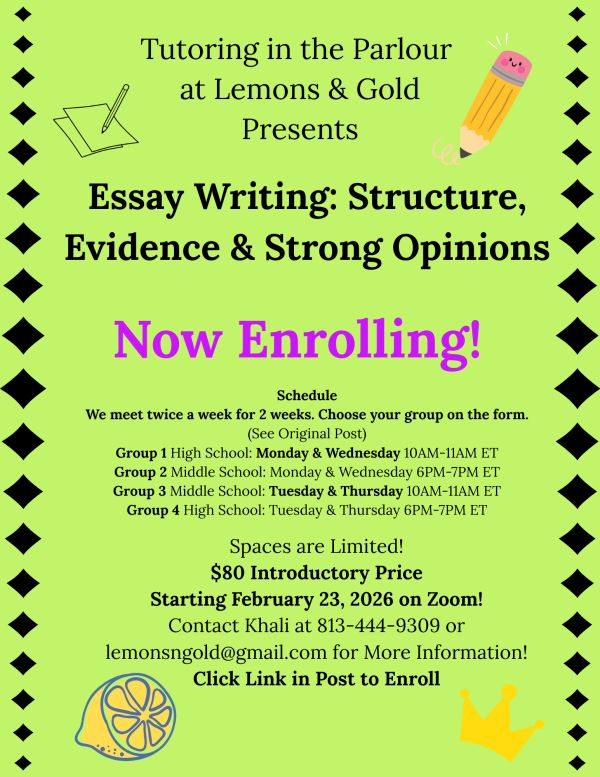 Welcome to Lemons & Gold, where words, ideas, and learning come to life. From one-on-one and small group online tutoring in ELA, STEM, Social Studies, and ESL to editing and creative writing support, we help students grow skills, confidence, and curiosity; all in a calm, encouraging space.