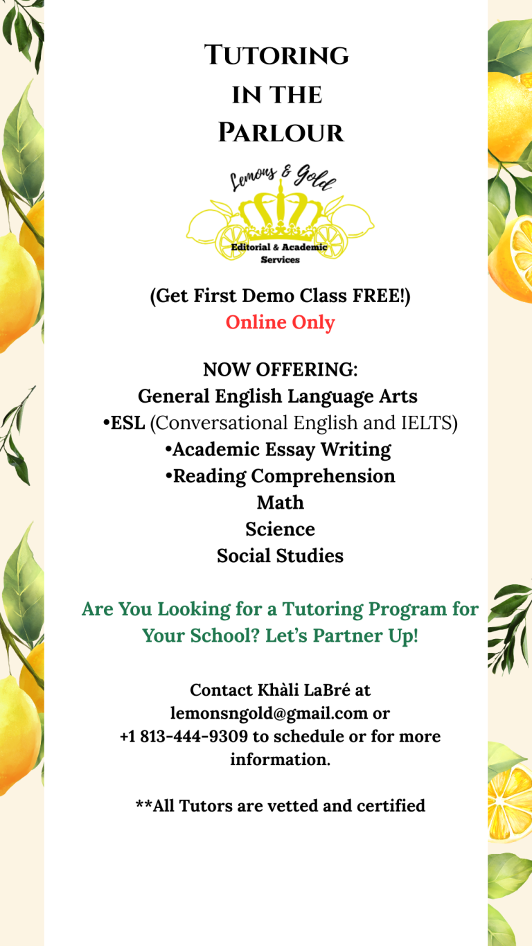 I have my teacher certification, I am certified for grades 6-12 English in the State of Florida. I have a Bachelor’s degree in English, Master’s degree in Creative Writing, and have worked previously with VipKid, EFKids, Chegg Tutors, A2Z Tutoring, Club Z! Tutoring, and taught High School English and Biology & Environmental Science, and in the Juvenile Justice centers. I have 6 years of teaching and tutoring experience. Email me at admin@lemonsngold.com