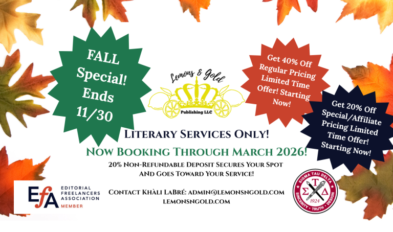 Ask for Special Pricing if you are a member of Black Girls Write, Too!, a member of the Editorial Freelancers Association, a student or alumnus of the University of South Florida or Southern New Hampshire University, an HBCU, a Healthcare worker, a member of the U.S. Military, a Returning Client, or a Senior Citizen, I just need to see your badge, ID, or proof of your affiliation.